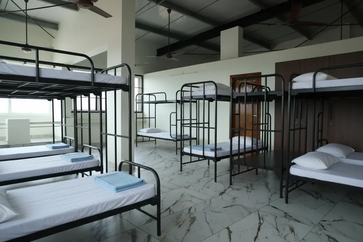 Our dormitory offers a clean, comfortable, and secure living experience designed for students, professionals, and travelers who want a peaceful stay at an affordable price. Each room is thoughtfully arranged with well-maintained bunk beds, fresh linens, spacious interiors, and proper ventilation to ensure maximum comfort. With 24/7 security surveillance, individual lockers, and daily housekeeping, we maintain a safe and hygienic environment for all residents. Guests can enjoy high-speed WiFi, air-conditioned rooms, hygienic washrooms, laundry facilities, and a dedicated kitchen and dining area for a complete home-like experience. The dormitory is located in a prime area close to colleges, workplaces, transport hubs, and essential amenities, making it the perfect choice for long-term or short-term stays. Whether you need a quiet place to study, rest, or work, our dormitory provides a calm, community-friendly, and budget-friendly living space you can truly call home.